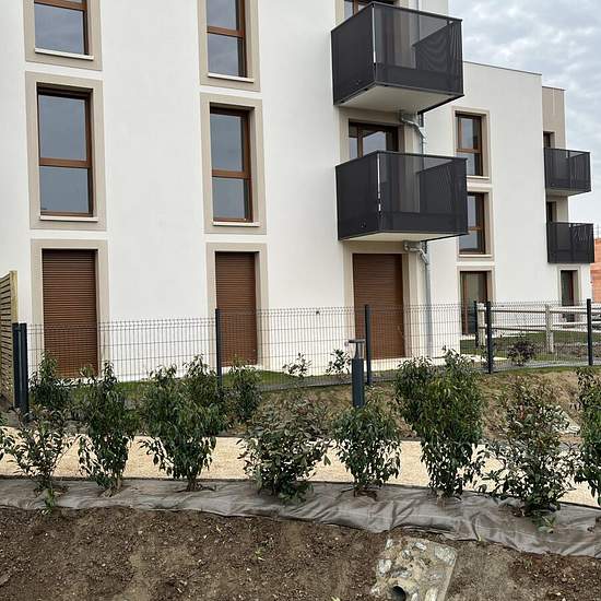 BAYEUX, route de Littry Dans un immeuble neuf, avec accès sécurisés intérieur et extérieur, ascenseur Appartement de 3 pièces d'environ 59 m² en rez-de jardin. Il comprend une entrée, un séjour avec espace cuisine aménagée, deux chambres, salle de bains, WC. Terrasse et jardin. Place de parking en sous-sol, local vélo. Chauffage individuel gaz Conformité PMR Honoraires de 860 € TTC à la charge du locataire comprenant 160 € TTC pour l'état des lieux. Loyer de base 850 €/mois. Provision sur charges 160 €/mois, régularisation annuelle. Dépôt de...