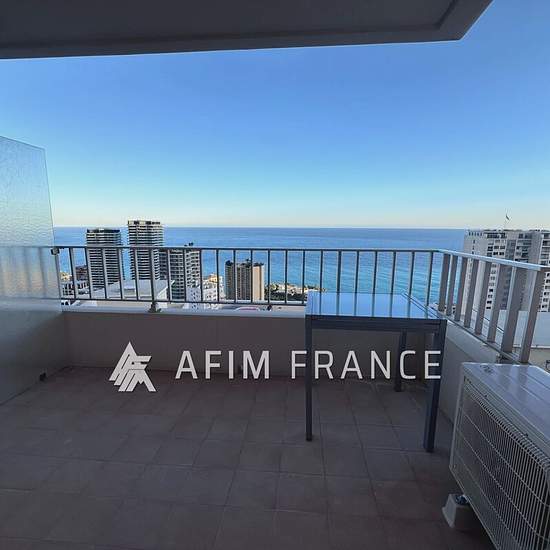 Beausoleil, quartier Guynemer. Joli 3 pièces meublé dans une résidence calme et sécurisée. Il se compose d'une entrée avec cuisine ouverte équipée, un séjour lumineux avec terrasse vue mer, deux chambres dont une avec terrasse vue mer et une salle de douche. Climatisation réversible. 1 garage en s/sol.