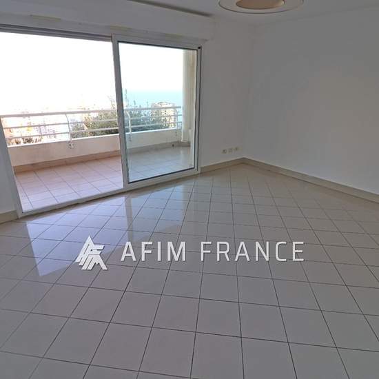 Résidence Beauséjour, appartement 3 pièces vide, traversant, composé d'une entrée, un séjour, une cuisine américaine, deux chambres, une salle de bains et une salle de douche. Terrasse avec vue mer. Exposition Sud/Est. Immeuble avec gardien et piscine. Parking privé en sous-sol. Afficher le téléphone