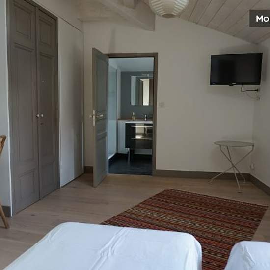 Located in a former wine-growing building, "Le Pressoir" is a 109 m2 flat on 2 levels. You will have access to the whole flat and will have an entrance and private parking as well as a reserved space in the garden. On the garden level, you will find a large living room of 50 m2 with an integrated kitchen: sofa for 3 to 4 people, HD TV, dining table for 6 people, armchairs... induction hobs, oven, microwave oven, fridge-freezer, dishwasher, Nespresso coffee machine, electric kettle, toaster, washing machine with dryer... Upstairs, 2 bedrooms ...