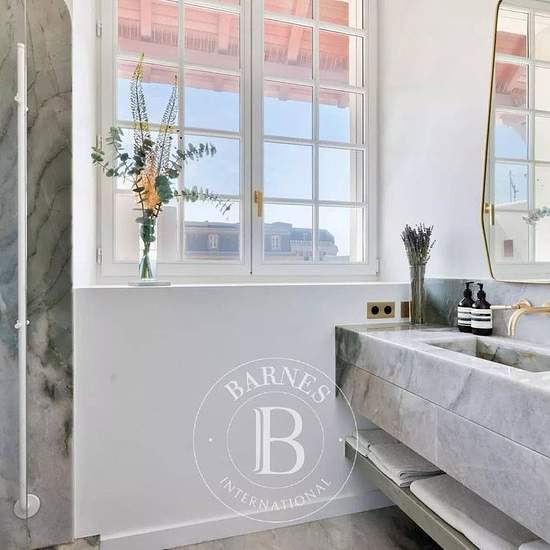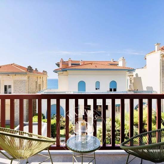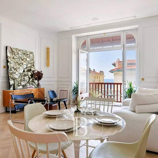 Appartement de charme situé dans un bâtiment historique à 1 minute de la plage du Miramar, au cœur de Biarritz. Entièrement rénové, cet appartement de 68 m² allie lignes classiques, arches élégantes et prestations haut de gamme. Le salon lumineux est équipé d’un rétroprojecteur, d’un système Sonos intégré et d’un plancher chauffant. La cuisine ouverte avec table pour 4 s’intègre harmonieusement à l’espace de vie. Un balcon offre un aperçu mer, idéal pour un café au soleil. Deux chambres, chacune équipée d'une d'un lit Quuensize, d'une salle ...