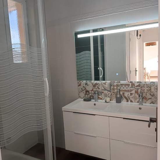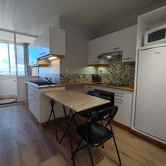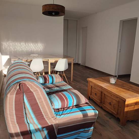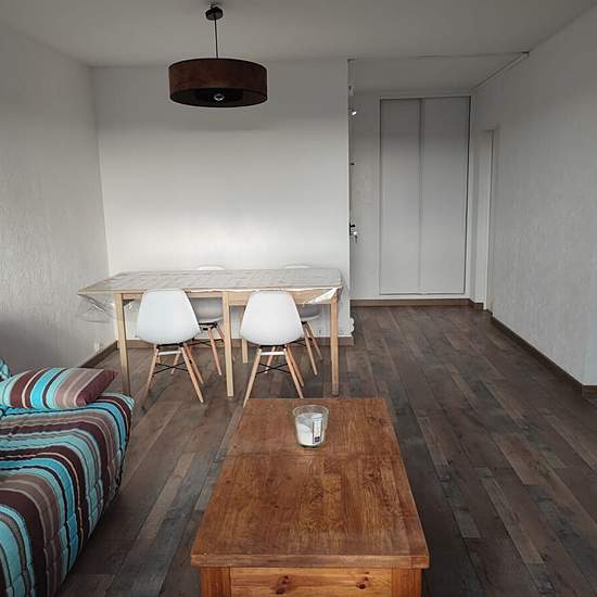 A 10 mn à pied du bourg, appartement 3 pièces MEUBLE à louer à l'année résidence avec ascenseur séjour d'environ 20 m² sur balcon 2 chambres - salle d'eau - WC séparé cave chauffage inclus dans les provisions pour charges abonnement eau froide individuel LIBRE LE 21/02/2026