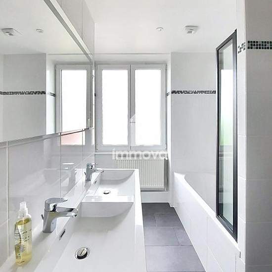 IMMOVAL vous propose, à BITSCHHOFFEN en rez-de-chaussée surélevé d'une petite propriété, un charmant 3 pièces de 76.56m² avec cave et parking privatif. Il se compose d'une entrée, d'une belle pièce de vie double de 30m² avec cuisine toute équipée ouverte, de 2 chambres spacieuses de 15m² chacune, d'une salle de bains et d'un toilette séparé. Charme de l'ancien rénové, portail avant motorisé, chauffage collectif et eau chaude individuelle. Disponible début janvier 2026.