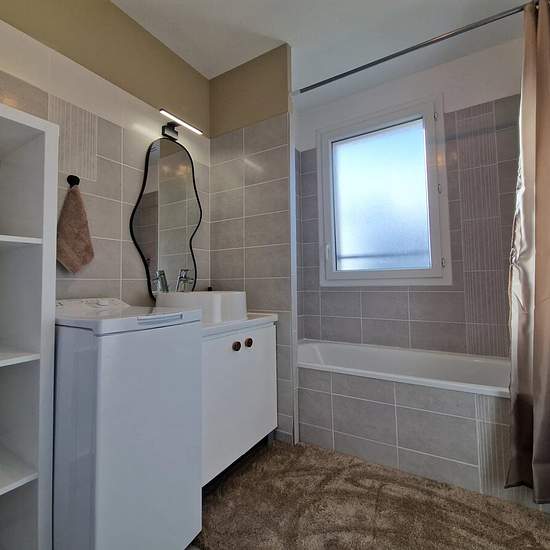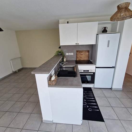 BLAGNAC Bel appartement Type 3 d'environ 70m² comprenant entrée, pièce de vie avec cuisine équipée ouvrant sur balcon, couloir desservant deux chambres avec placards, salle de bains, wc indépendant. Chauffage central gaz de ville + clim réversible. 2 places des parking sécurisées Parfait état! Belles prestations. Tramway à deux pas.