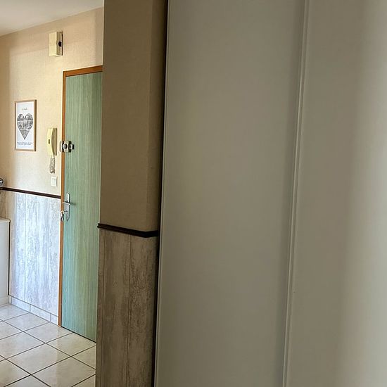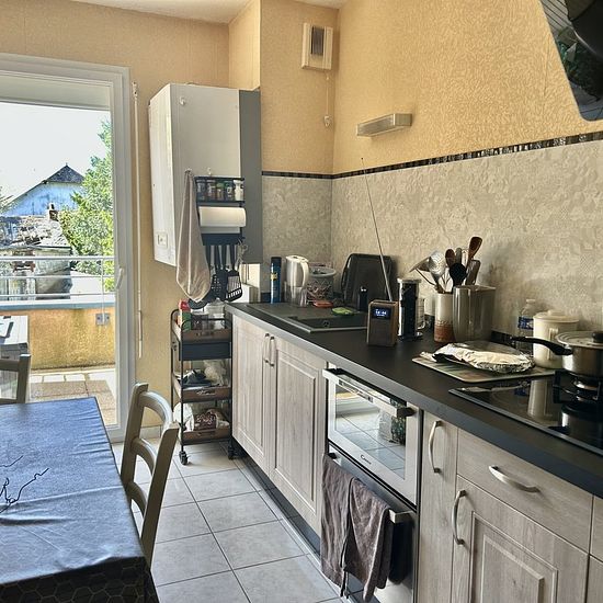 Appartement d'environ 65 m2 situé au 1e étage avec ascenceur comprenant une entrée avec placard coulissant, un salon lumineux de 25 m2 et deux baies vitrées donnant sur un grand balcon de 19 m2, ainsi qu'une cuisine de 9 m2 équipée (four, lave-vaisselle, hotte et plaques de cuisson, sans garantie du propriétaire). Il dispose de deux chambres avec placards intégrés (10 m2 et 11 m2), d'une salle d'eau de 4 m2 et des WC séparés. Le bien est proche de toutes commodités et dispose d'un parking gratuit en bas du bâtiment. Équipements et services :...