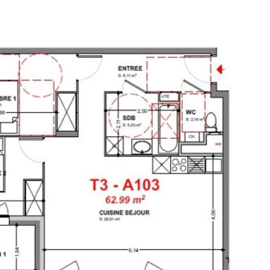A103 PARC ANDINE- A SAISIR ABSOLUMENT SUPERBE T3 DE 62 M² AVEC 2 BALCONS EXPOSITION SUD A L'INTERIEUR D'UNE RESIDENCE RECENTE BBC DE STANDING. Il est composé d'une belle pièce de vie de 28m², une cuisine US (meubles haut et bas, hotte, plaque de cuisson et four) donnant sur le balcon, deux chambres en sol parquet avec placard, dont une avec balcon, une salle de bain aménagée avec meuble sous vasque et sèche serviette. Garage fermé en sous-sol et une place de parking. Visiophone. Consommation d'énergie totale 660 EUR et 940 EUR par an (prix m...