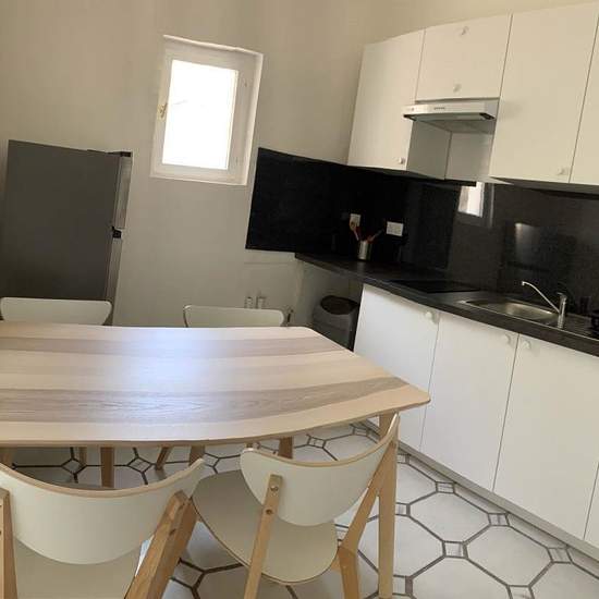 Appartement de 54 m² à louer sur Bordeaux Au RDC, T3 de 54 m² Proche de la Victoire, 3 minutes à pied du tram B arrêt St Nicolas. Dans une rue calme et recherchée, rue Leberthon, appartement au RDC d'une petite copropriété de 4 lots. Belle surface de 54 m², meublée et équipée, beaux volumes et lumineux. Vue sur jardin, 1 chambre et 1 bureau, 14 et 15 m². Le bureau peut aussi servir de 2ème chambre. Entièrement rénové en mai 2022.1 salle de bains avec douche et 1 WC séparé. Séjour 12 m², et cuisine séparée 8 m², équipée (plaques, hotte, four ...