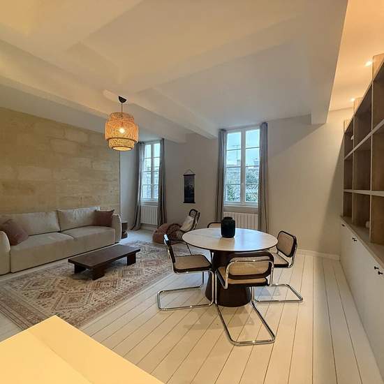 Découvrez cet élégant appartement meublé situé au cœur de Bordeaux, dans le quartier prisé du Jardin Public. Avec une superficie de 69,79 m², cet appartement lumineux comprend deux chambres et un espace de vie confortable. Les grandes fenêtres laissent entrer la lumière naturelle, créant une atmosphère chaleureuse et accueillante. L'espace de vie se distingue par son style moderne, avec un salon spacieux et une salle à manger attenante, idéale pour les réceptions. La cuisine bien équipée offre un design contemporain avec de nombreux rangemen...