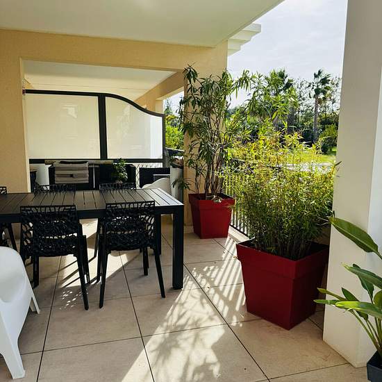 BORMES-LES-MIMOSAS - Le Pin - Dans résidence neuve sécurisée, 3 Pièces de 67,2 m², avec terrasse d'environ 31,4 m², exposition Sud-Ouest, composé d : un séjour avec cuisine ouverte aménagée et semi-équipée, deux chambres, une salle d'eau, un WC indépendant et un dégagement. 2 Garages ensous-sol. Chauffage individuel par climatisation réversible - Eau chaude individuelle par cumulus thermodynamique. Carrelage grès cérame au sol et peinture blanche aux murs et plafonds. Lumière, prise électrique et point d'eau sur terrasse - Volets roulants él...