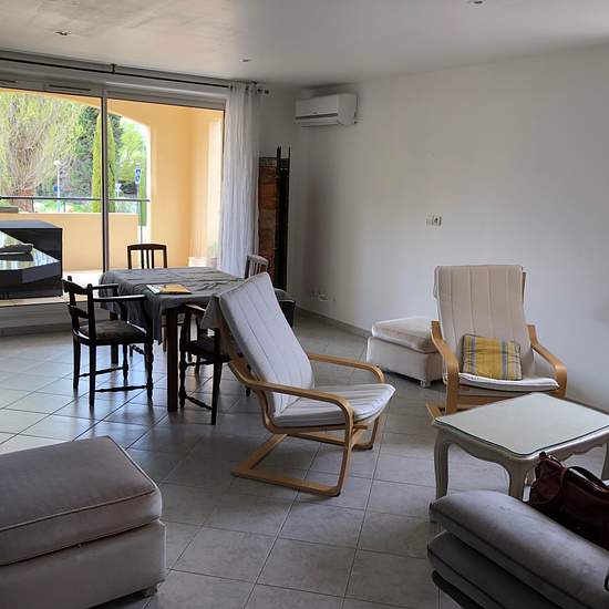 Bouc Bel Air 13320 . Nous vous proposons à la location ce Type 3 de 70 m2 en rez de jardin avec terrasse et jardinet, dans une résidence fermée de standing, au calme tout en étant à deux pas des commodités. Il se compose d'une entrée, d'un dégagement avec placard, une pièce de vie de 33 m2 avec cuisine entièrement équipée ( frigo américain, lave vaisselle, fours ...), deux chambres avec placard aménagé ( 10 m2 et 12,5 m2 ), une salle de bains avec lave linge, un WC, une terrasse, un jardinet, un garage et une place de stationnement. Chauffag...