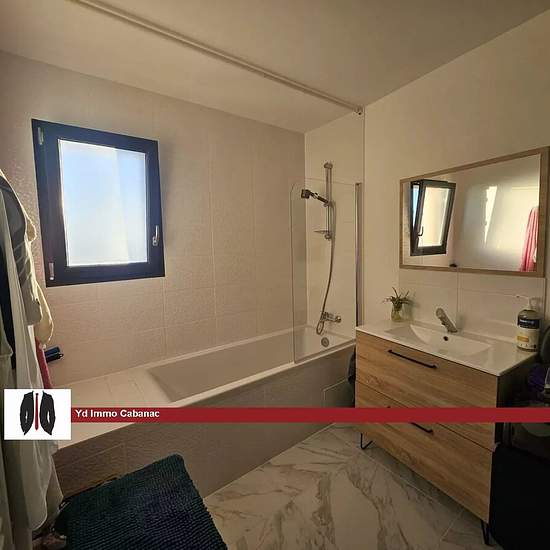 Situé au cœur de Cabanac, découvrez cet agréable appartement de 66,70 m² situé à l’étage, offrant de beaux volumes et un confort optimal. Il se compose d'un salon / séjour lumineux avec une cuisine aménagée et entièrement équipée : lave-vaisselle, four, micro-ondes, plaque, hotte, ainsi qu’une machine à laver et un sèche-linge Deux chambres équipées de placards/penderies Une salle de bain avec baignoire et sèche-serviette Profitez également d’une terrasse de 24 m², exposée au soleil l’après-midi, idéale pour les moments de détente. Les plus ...