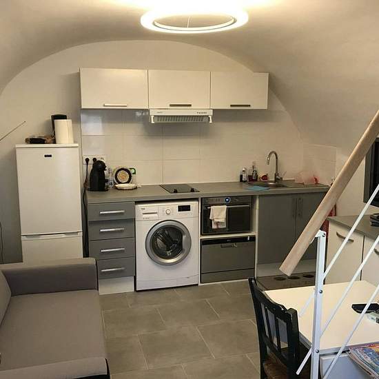 Charmante maisonnette joliment bien agencée, fonctionnelle, comprenant un salon de jardin en extérieur, une cuisine voûtée en rez de chaussée entièrement équipée avec four, micro ondes, lave vaisselle, réfrigérateur-congélateur, plaque vitro, petit canapé avec écran plat ; étage I : une chambre avec sa salle d'eau-wc, son lave linge et son balconnet vue village, mer et montagne ; étage II : une chambre sous combles avec deux lits en 90 et sa salle d'eau-wc. Belle vue panoramique sur montagne. Période juin et septembre : 490 € la semaine Péri...