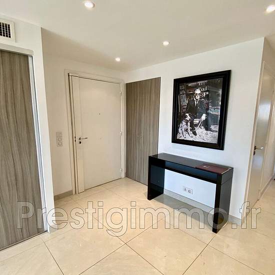Cannes Croisette Appartement 3 pièces 103 m² Prestations Haut de Gamme Situé sur la prestigieuse Croisette, superbe appartement de 103 m² offrant des prestations de très grand standing. Il se compose d'une entrée avec dressing, d'un vaste séjour de 50 m² avec cuisine américaine entièrement équipée, ouvrant sur une magnifique terrasse de 25 m² avec vue imprenable sur la baie de Cannes. L'espace nuit comprend deux chambres chacune avec accès à une terrasse, deux salles de douche, deux WC ainsi qu'une buanderie. Une place de parking en sous-sol...