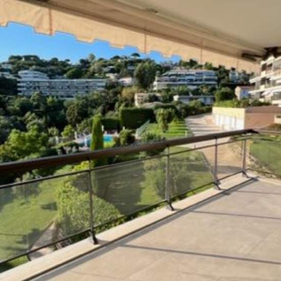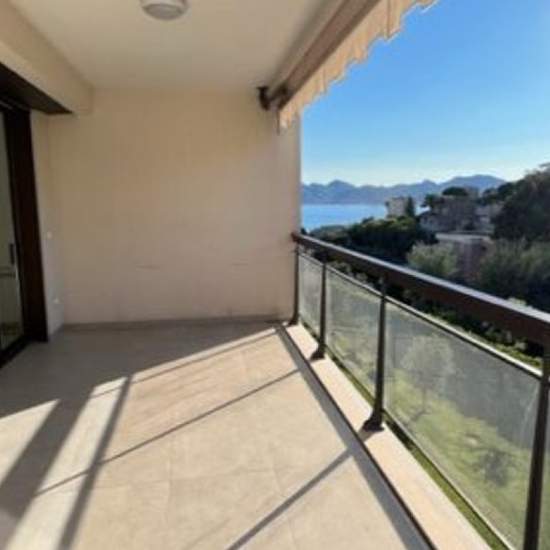 CANNES - VUE MER située dans la partie basse de la CROIX DES GARDES accès facile / au Sein d'une résidence de standing sécurisée à 8 minutes de Cannes Centre. Très beau 3 P ( 86 m² + Véranda de 15 m² réellement habitable soit 101 m²). Environnement verdoyant / et calme absolu, jardins fleuris et grande piscine. Immense terrasse de plus de 26 m² pour vos repas et accueillir vos amis ou la famille. Hall d'entrée, salon, (exposition Ouest au soleil couchant), salle à manger, cuisine semi-équipée avec Plaques et hotte, deux chambres,( Expostitio...