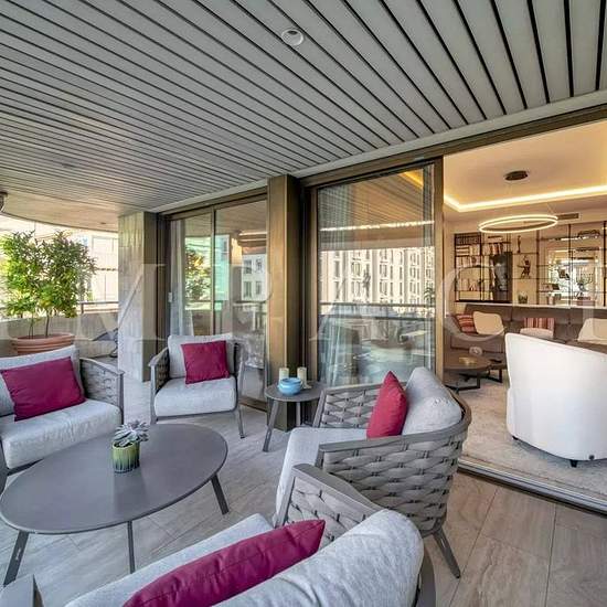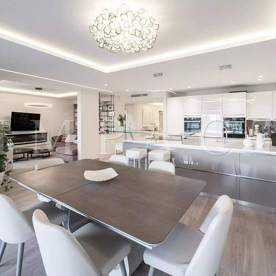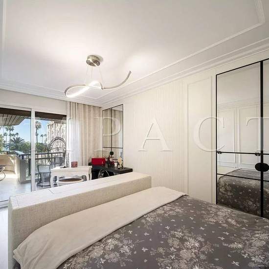 Résidence Gray d'Albion En deuxième ligne Croisette, mitoyen de l'Hôtel Majestic, à proximité immédiate, du Palais des Congrès, des commerces et restaurants, dans une résidence de grand standing sécurisée 24/7. Très bel appartement 3 pièces, au 3ème étage avec ascenseur et parking en sous sol, entièrement rénové exposé Sud, 110 m² sur belle terrasse d'angle 32 m² aménagées en salon & salle à manger d'été, aperçu mer. Description : Hall d’entrée, toilettes & dressing invitées. Beau et vaste séjour (65 m2) ouvrant par 3 baies vitrées sur la te...
