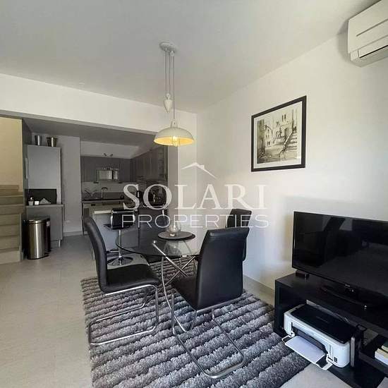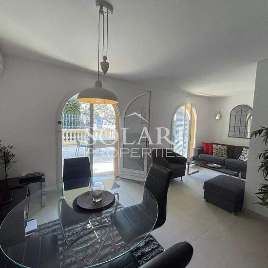 Location saisonnière : Bel appartement en duplex situé en front de mer et profitant d'une vue sur la plage, le Port de Théoule et la Côte d'Azur. L'appartement s'ouvre sur un couloir comprenant une salle de douche avec toilette ainsi qu'un espace buanderie avec lave-linge et sèche-linge. Ce couloir mène à l'espace de vie composé d'une belle cuisine américaine entièrement équipée, d'un coin salle à manger et d'un salon comprenant un canapé-lit pouvant accueillir 2 personnes. Le tout s'ouvre sur une grande terrasse avec équipement d'extérieur ...