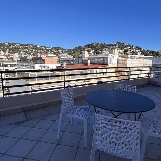 Situé au dernier étage avec 2 terrasses joli 3 P meublé dans une résidence de bon standing avec concierge, ascenseur, climatisation, arrière Croisette a 2 p des plages et de la rue de'Antibes , a louer en saisonnier ou a l'année