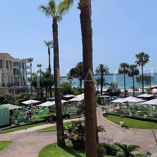 Centre Cannes Croisette, résidence de grand standing donnant sur un parc, vigiles et réception 24H/24H. Appartement 2 chambres, environ 100m² entièrement rénové, terrasse sud est 7m², vue parc et mer. Descriptif : Grande entrée Double salon avec un espace canapé télévision écran plat, une table repas 6 personnes, ouvrant sur terrasse Est vue parc ce mer. Terrasse couverte vue parc et Croisette, table pour 4 personnes. 1 grande cuisine indépendante entièrement équipée, réfrigérateur, congélateur, four, micro-onde, plaque électrique, machine N...