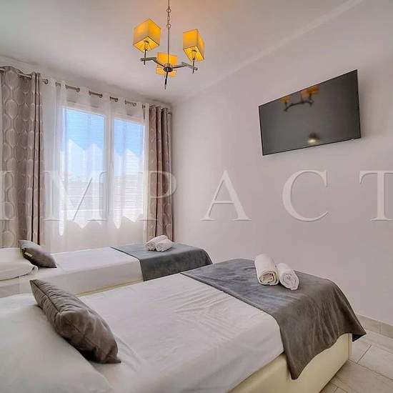 A proximité immédiate de la Croisette et des commodités, Impact vous présente un appartement moderne 60 m² à louer. Descriptif Hall d'entrée, toilettes invités. Séjour lumineux comprenant deux canapés, télévision. Cuisine entièrement équipée avec four, micro-onde, plaque de cuisson, réfrigérateur, cafetière. Chambre n°1 : Lit double 160 cm X 190 cm, dressing, salle de bains. Chambre n°2 : 2 lits simples 90 cm x 190 cm, dressing, salle de bains. Balcon avec vue dégagée sur la ville. Autres équipements : WIFI, Climatisation Equipé pour 4 perso...