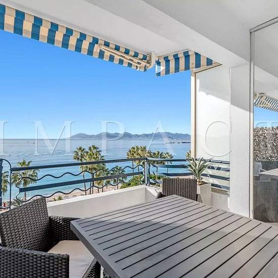 Magnifique appartement moderne d'environ 85m² situé au 6ème étage d'un immeuble de standing à Cannes, La Croisette. Magnifique vue mer et collines de Cannes. Terrasse d'environ 11m². Entrée, toilettes invités Double salon/salle à manger équipé de canapés pour 4-5 personnes, télévision écran plat, table et chaises pour 4 personnes. Accès direct sur la terrasse vue mer. Cuisine Américaine ouverte entièrement équipée avec four, microondes, réfrigérateur/congélateur, plaque à induction, lave-vaisselle, machine à café et bouilloire. Chambre maîtr...