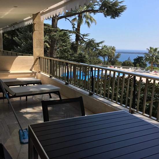A propos de ce bien somptueux trois pieces entièrement rénové travaux de grande qualité, grande terrasse vue mer , cave garage et parking extérieur residence avec gardien assermente sécurité 24/24 park piscine navette pour le centre ville. sumptuous three rooms completely refurbished high-quality work, open luxurious kitchen, living room, master bedroom with bathroom, lighted and modern cupboards , 2nd bedroom with office area, large luxury shower room ,terrace with sea view, garage cellar and outdoor parking, safety residence, shuttle for ...