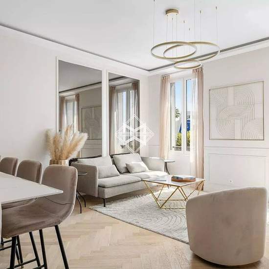 Idéalement situé face au Palais des Festivals, ce magnifique appartement d’environ 74 m² bénéficie d’un emplacement central exceptionnel. Entièrement rénové, il offre un cadre moderne et élégant, parfait pour profiter des événements du Palais et des attractions voisines. Il se compose comme suit : - Une entrée avec placards - Un salon / salle à manger ouvert sur une cuisine entièrement équipée - Chambre 1 : suite de Maîtres avec lit de 160cm, placards, salle de douches doubles vasques, WC - Chambre 2 : suite d'invités avec lit de 160cm, plac...