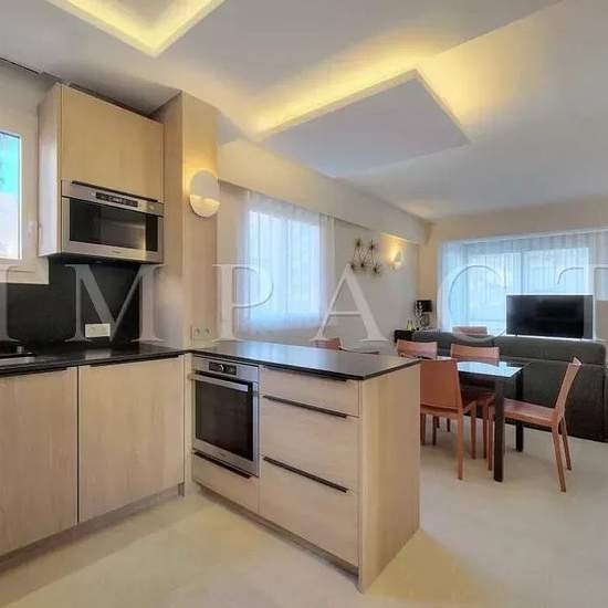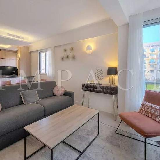 Appartement situé au sein d’une résidence de standing dans le complexe du Grand Hôtel à Cannes, à proximité immédiate du centre et des plages. L’appartement d’environ 55 m² se compose d’un séjour d’environ 20 m² avec espace salon et coin repas. La cuisine est entièrement équipée et fonctionnelle. L’espace nuit comprend deux chambres en suite, chacune avec salle d’eau, toilettes, dressing et écran plat. Appartement adapté aux séjours touristiques ou professionnels, dans un environnement sécurisé et recherché. Autres équipements : Climatisatio...
