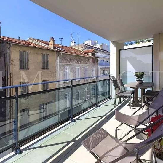 Appartement 3 Pièces d’environ 80m² avec terrasse de 12m² - centre-ville. Entrée. Toilettes invités. Grand salon et salle à manger donnant sur la terrasse, télévision écran plat, espace salon. Espace repas équipé pour 4 à 6 personnes. Cuisine américaine entièrement équipée : réfrigérateur/congélateur, four électrique, micro-onde, plaque de cuisson halogène, lave-vaisselle et lave-linge. Terrasse équipée en salle à manger d’été 4 personnes. Chambre n°1: lit double (160cm), télévision écran plat, placards. Salle de bain/douche, toilettes, bain...