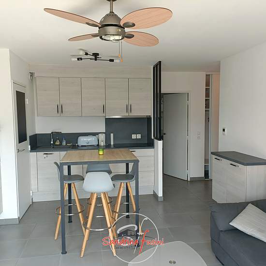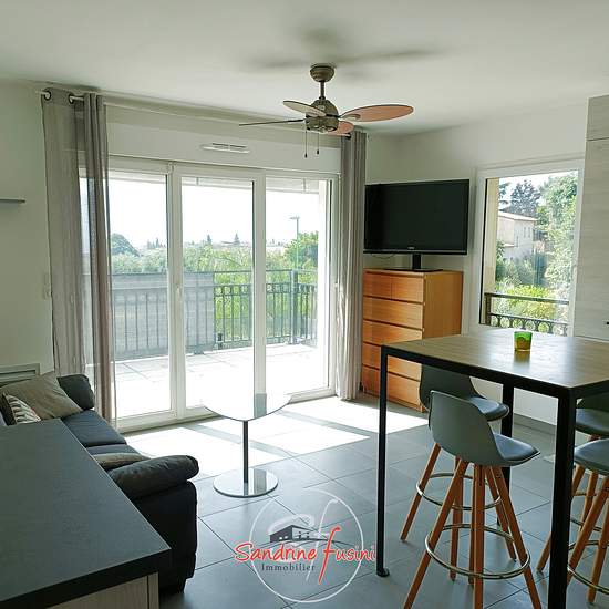 CARROS-LES-PLANS : chemin de l'Escas de Nouguie ('Le domaine des Oliviers') beau 3 pièces loué MEUBLE au premier et dernier étage d'une surface d'environ 57m2 composé: D'une entrée avec placard, un séjour avec cuisine américaine entièrement aménagée et équipée s'ouvrant sur une terrasse, un dégagement desservant deux chambres avec chacune un dressing, une salle de bains et un WC séparé. Pour compléter le bien un garage fermé en sous-sol. Ses atouts : Résidence récente (2019) traversant et lumineux, au calme, nombreux rangements et entièremen...