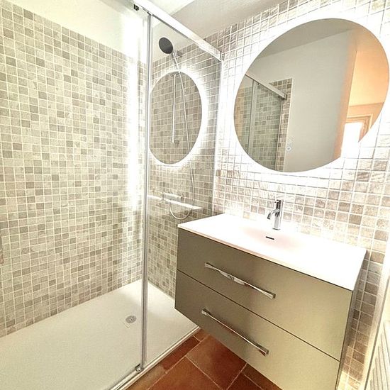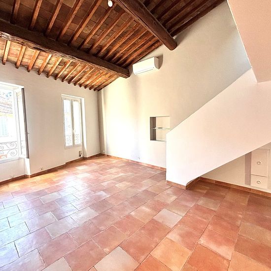 Cassis - En dernier étage d'un petit immeuble de la rue principale, location d'un appartement de type 2/3 en duplex. Climatisé et en excellent état, il se compose, au niveau principal, d'une entrée, un séjour avec une cuisine ouverte équipée, une chambre avec placard, une salle d'eau et un wc séparé. Au niveau supérieur, une grande mezzanine de 17,50 m2 avec fenêtre de toit. Libre immédiatement. Mdt 724. « Les informations sur les risques auxquels ce bien est exposé sont disponibles sur le site Géorisques : ».