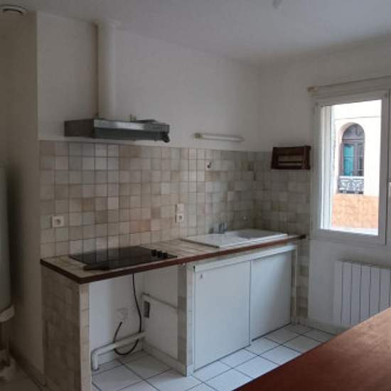 En centre ville, appartement de type 3 en rdc comprenant une entrée, un coin cuisine semi équipée (hotte et plaque ), ouvert sur le séjour, un couloir desservant 1 pièce faisant office de petite chambre 9 m2, et une deuxième chambre 11 m2, salle de bains et WC séparé. Une cave complète les prestations de cet appartement . Le chauffage est électrique . Double vitrage. Disponible au 04/02/2026