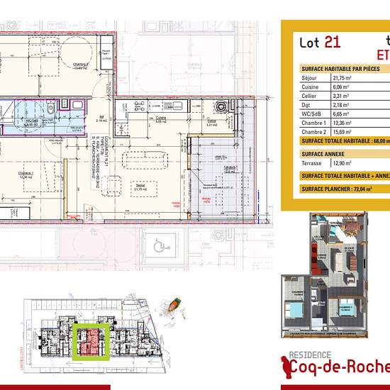 Découvrez trois T3 (lots 2, 18 et 19) dans la nouvelle résidence COQ DE ROCHE sur la route de Baduel à proximité de l'URSAFF composé de : - un séjour, - une cuisine, - un cellier, - un WC dans une salle de bain, - deux chambres climatisées, - un dégagement, - une terrasse. Résidence sécurisée avec ascenseur ,interphone , digicode , visiophone et local à vélos . Cuisine aménagée ,placard aménagé dans les chambres , climatisation dans les chambres . Programme Haut de Gamme, architecture moderne, proche de toutes commodités. Ces T3 sont disponi...