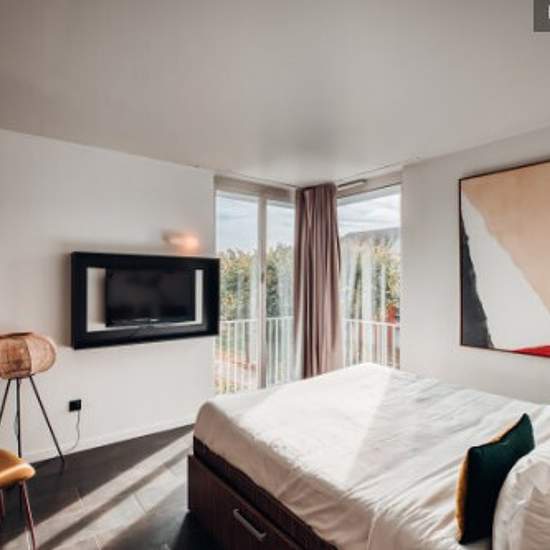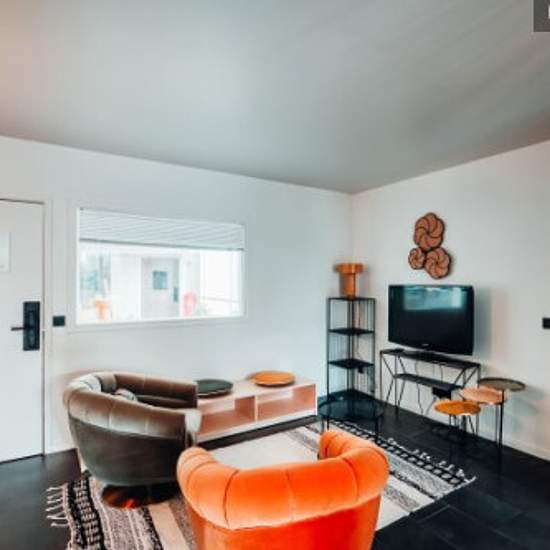 La résidence est située à Cergy-Pontoise, vous séjournerez juste à l'extérieur du centre de Paris. C'est un bâtiment au design moderne qui propose 130 appartements spacieux, allant du studio au T2. Elle propose un savant mélange entre Coliving et Coworking, rencontres et opportunités, ouverture d'esprit et confort de vie. Posez vos valises dans votre Flex'Appart, entièrement meublé, lumineux et décoré avec soin, vous êtes chez vous ! Descendez et installez-vous dans nos espaces de coworking, nos bureaux privatifs ou même nos salles de réunio...
