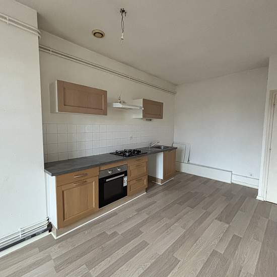 CHARLIEU Boulevard Valorge - Appartement de type 4 au 2ème étage d'une surface de 83,27 m2 habitables comprenant un séjour avec placard et cuisine ouverte, une pièce en alcôve, 2 chambres, salle de bains et W.C. Chauffage individuel gaz. Disponible de suite. Loyer: 450,00EUR FA: 324,00EUR