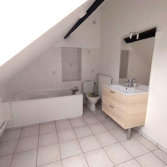 CHAUMONT - Dans un petit immeuble au centre-ville un appartement en duplex de type F3 comprenant : - au RDC : une entrée, un WC, une cuisine semi ouverte sur séjour. - à l'étage un dégagement, 2 chambres et une salle de bains avec WC. Loyer : 505.00 Euro + 25.00 Euro de charges (communs, eau froide, ordures ménagères et entretien de chaudière) Dépôt de garantie : 505.00 Euro Honoraires : 404.00Euro Les informations sur les risques auxquels ce bien est exposé sont disponibles sur le site Géorisques :