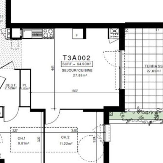A002 LE FLAUBERT : PROFITEZ D'UNE TERRASSE DE PRES DE 28M² DONNANT INTERIEUR DE RESIDENCE RECENTE DE STANDING A FAIBLE CONSOMMATION ENERGETIQUE. T3 AVEC BEAUX ESPACES dont une pièce à vivre de 28m² avec cuisine aménagée (plaques vitro, four, hotte, meubles hauts et bas). Un espace nuit comprenant 2 belles chambres en sol parquet dont une avec placard mural et donnant accès à une seconde terrasse de 5m², une salle de bain avec meuble sous vasque et sèche-serviettes. Buanderie et rangements. Garage fermé en sous-sol sécurisé. CHAUFFAGE IND AU ...