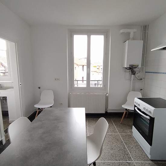 Ideal colocation pour 3 personnes : cuisine équipée avec coin repas, 3 belles chambres meublees, salle d'eau, cave, 640€hc.