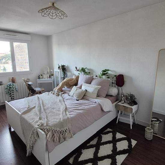 Proximité ESP/IUFM et Centre Ville .3 rue Berthollet, 63400 Chamalières. Disponible FIN JANVIER 2026. Bel appartement lumineux et calme de 65 m2. Résidence récente, place de stationnement sécurisée et cave. Coin cuisine ouvert, meubles, plaques de cuisson et frigo top. Balcon, 2 belles chambres, salle de bain/wc, rangements. Chauffage électrique, double vitrage.