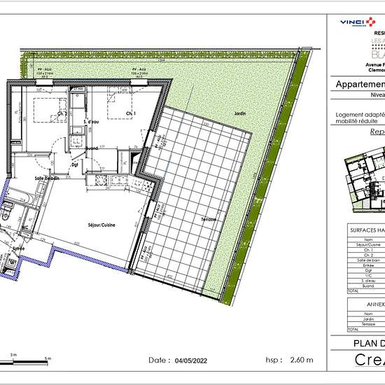 Dernière opportunité ! À Clermont-Ferrand, en plein coeur du centre-ville et dans quartier recherché, découvrez ce superbe T3 au calme, au rez-de-chaussée d'une résidence neuve et sécurisée 'Les Allées Blatin', rue Jean-Baptsute Torrilhon -- à seulement 5 minutes à pied de la place de Jaude, proche de toutes commodités et transports. Cet appartement d'environ 79.01 m2 comprend : entrée, cuisine aménagée (éléments, hotte et plaque) ouverte sur séjour donnant accès sur terrasse avec jardin d'environ 92.09m2, 2 chambres avec placard dont une av...