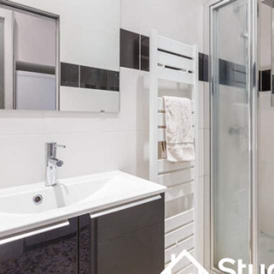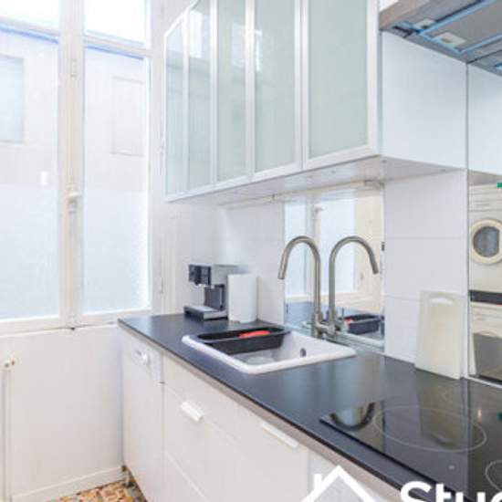 Clichy La Garenne ; au centre ville, 3 pièces avec entrée privée, refait à neuf en 2013, RDC surélevé, belle hauteur sous plafond, dans une maison bourgeoise classée, petite copropriété. L'appartement est équipé, et peut accueillir jusqu'à 3 adultes et 2 enfants. Deux vraies chambres ; une grande chambre avec lit double, une petite chambre avec lit simple, salon/salle-à-manger avec canapé/lit pour deux personnes, cuisine équipée, petite salle de douche, WC séparés. Internet, WIFI, Samsung Télé grand écran LCD. 1500 m de Paris 17ème. ESCP Por...