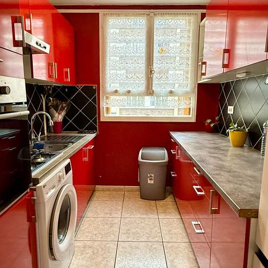 VALMY, proche gare du stade. Dans résidence clôturée, appartement 3 pièces comprenant : entrée avec placard, cuisine séparée aménagée, 2 chambres, salle d'eau et wc séparé. Parking collectif dans la résidence. Chauffage collectif compris dans les charges. Libre de suite.