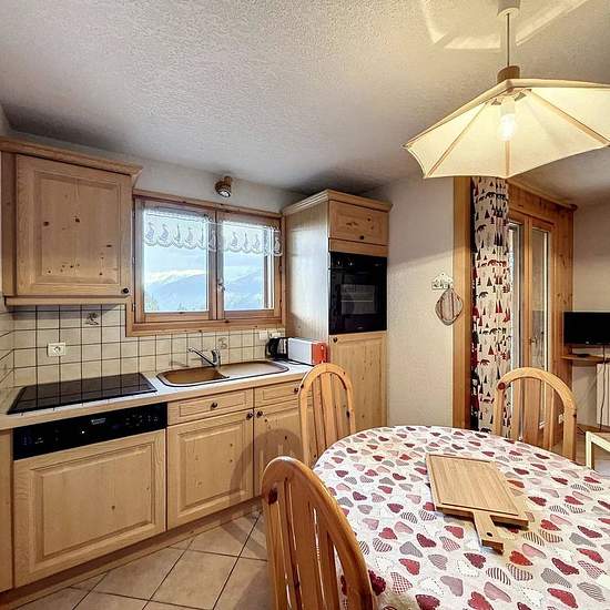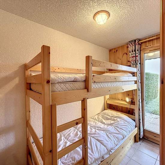 Bel appartement en rez de jardin de 44 m² environ, situé dans une petite copropriété à proximité du ski bus et à 900 mètres du village de Combloux. Il se compose d'une entrée, placard, une salle de bain avec un lave-linge, un wc indépendant, une chambre avec un lit de deux personnes (140x200), une chambre cabine avec deux lit superposés avec accès sur jardin. Une pièce de vie avec cuisine ouverte tout équipée (four, frigo, lave-vaisselle, plaque vitrocéramique, Nespresso) , coin repas, coin salon avec un convertible deux personnes avec accès...