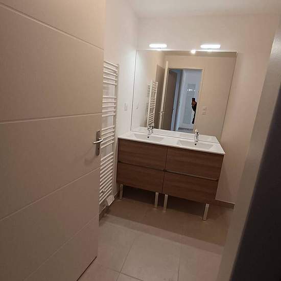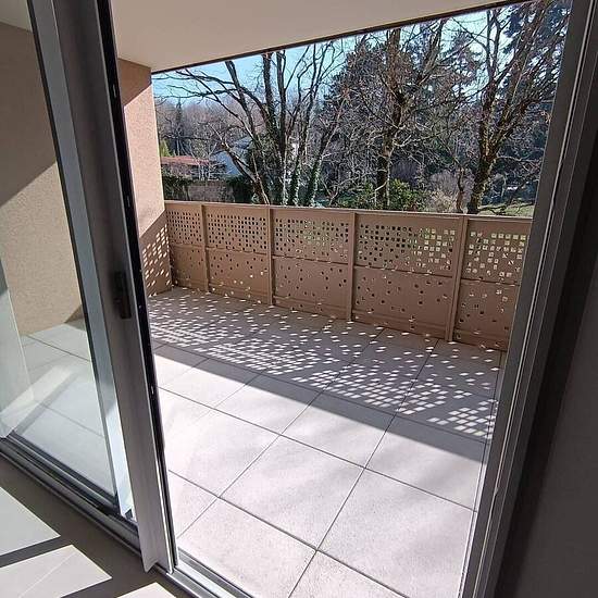 EXCLUSIVITE - T3 NEUF Dans résidence sécurisée - Ce beau T3 de 69,70 m² composé d'une belle pièce de vie ouverte sur une cuisine aménagée et équipée (plaques, hotte et four), une belle terrasse exposée sud. Deux chambres avec placards, une salle d'eau et WC. Un garage et une place de parking complètent ce bien.