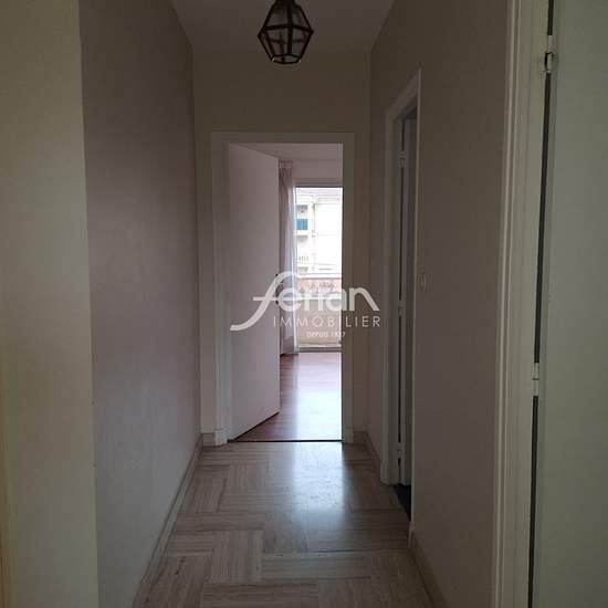 Dans petit immeuble proche du centre-ville, Type 3 de 77 m² au 1er étage sans ascenseur. Il se compose d'une entrée, séjour avec climatisation, balcon filant, cuisine indépendante aménagée avec cellier attenant, balcon, d'un dégagement avec placard desservant 2 chambres dont une avec placard, salle de bains et WC. 1 place de parking et une cave. DG: 810€ - Charges/mois : 40€ copro avec régul. annuelle + Ordures Ménagères - Hono charge loc : visite, dossier, bail : 340.20€ + EDL: 145.80€ Les informations sur les risques auxquels ce bien est e...