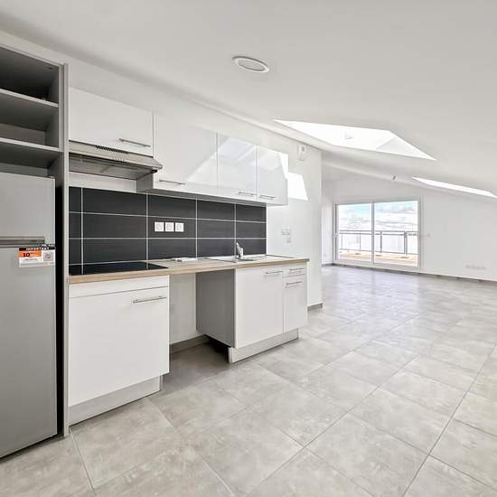 À louer – Appartement T3 neuf de 63,59 m² à Eaunes. Idéalement situé, cet appartement lumineux se compose d'une cuisine équipée (hotte et plaque vitrocéramique, le frigo n'est pas compris), d'un séjour ouvrant sur un balcon de 37 m², de deux chambres, d'une salle de bains (sans machine à laver) et d'un WC. Deux places de parking complètent ce bien. N'hésitez pas à nous contacter pour organiser une visite et découvrir ce logement. La livraison est prévue à partir du 25 février. Visite d'un logement témoin possible.