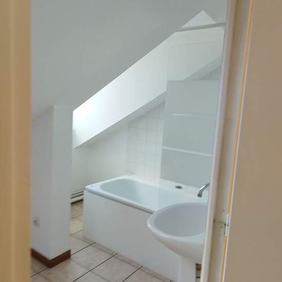 Le cabinet Leroux/Cramilly vous propose à la location un grand appartement mansardé dans un petit immeuble au calme en plein centre ville proche de la mairie comprenant une entrée desservant un séjour/salon, une cuisine aménagée, une chambre et une salle de bains avec WC. Disponible de suite. DPE : D Chauffage individuel gaz Eau chaude individuelle gaz Eau froide collective dans les charges. Les informations sur les risques auxquels ce bien est exposé sont disponibles sur le site Géorisques: "