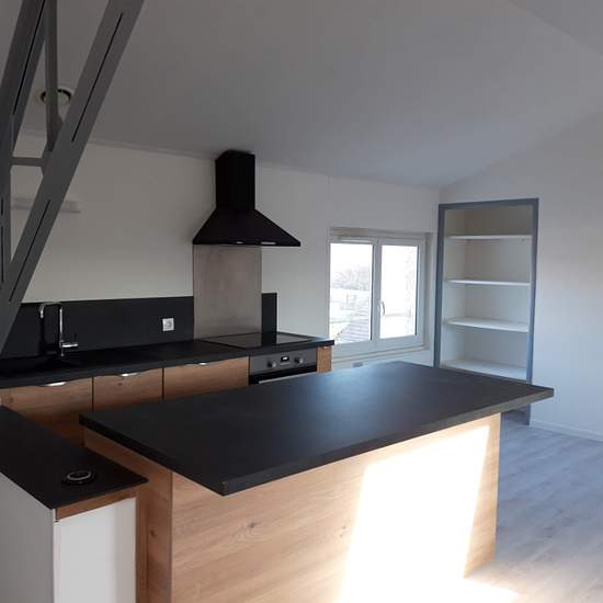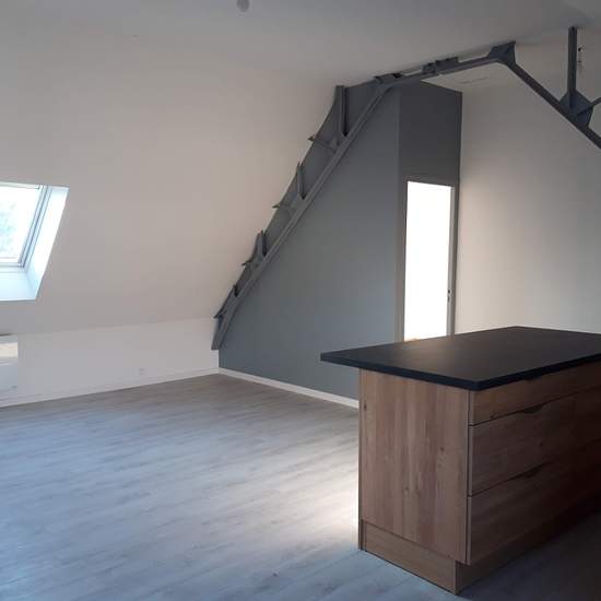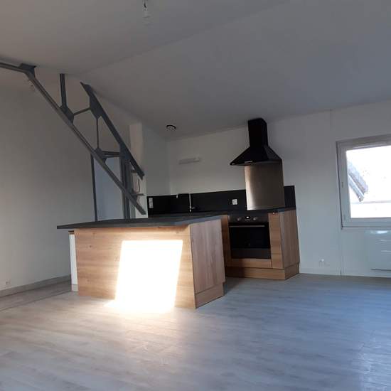Appartement 3 pièces de 56 m² au sol, entièrement rénové situé à 1 minute à pied de la gare comprenant une entrée, un séjour avec une cuisine aménagée et équipée, deux chambres, une salle de bains avec wc. une place de stationnement et un cellier.