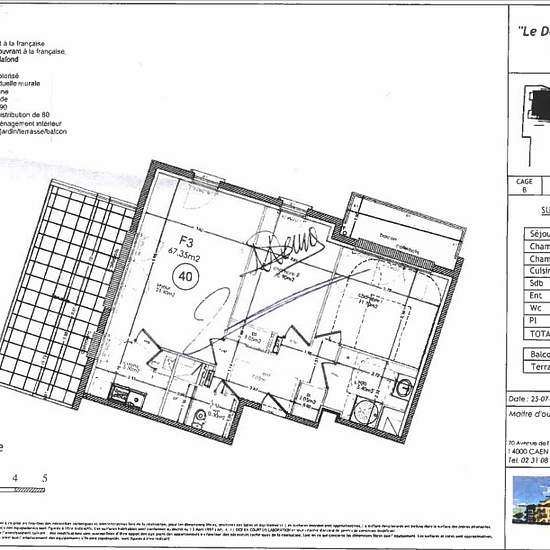 CAEN NORD Commune de EPRON - RESIDENCE LE DOMAINE DE NACRE - Proche CHU- TRES BEL Appartement récent de 3 pièces principales d'une surface de 67.35m2 avec belle terrasse et balcon sis au 3ème étage sans vis à vis avec ascenseur composé d'une entrée avec placards, d'un beau séjour donnant sur une terrasse de 20m2 bien exposé et sans vis à vis avec une superbe vue sur la plaine, une cuisine indépendante aménagée et équipée , deux chambres dont une avec balcon privatif , une salle de douches, un wc indépendant, deux emplacement de parking intér...