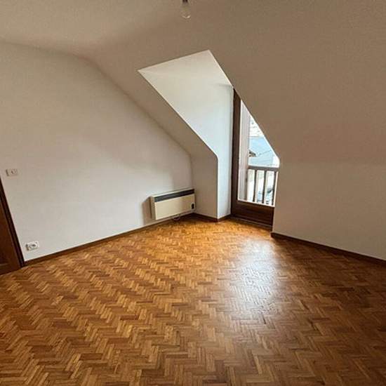 Bel appartement mansardé au 2ème et dernier étage d'un petit immeuble. Il est composé d'un dégagement avec placard, d'un séjour/salon donnant sur un petit balcon, d'une cuisine, de deux chambres dont une dispose de grands rangements, d'une salle d'eau et d'un WC. Libre de suite