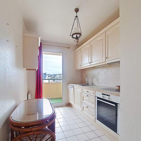 Dans résidence quartier du cinéma, appartement de type 3 situé au 4ème étage avec ascenseur comprenant entrée avec placard de rangement, séjour donnant sur balcon, cuisine aménagée et équipée, dégagement desservant deux chambres, salle d'eau et wc séparés. Un garage et une cave. La provision sur charges comprend l'entretien de la copropriété. Libre.